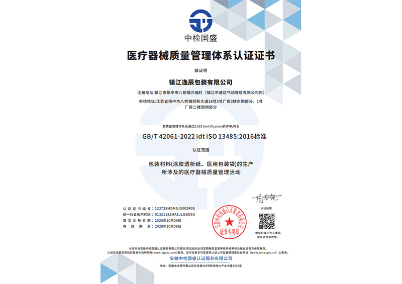 医疗器械质量管理体系认证证书