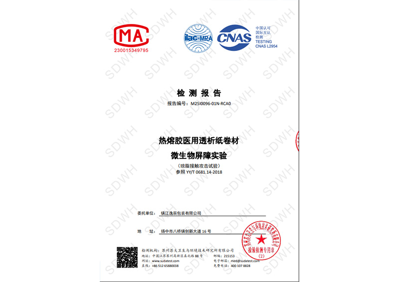 透析纸微生物屏障性能检测报告